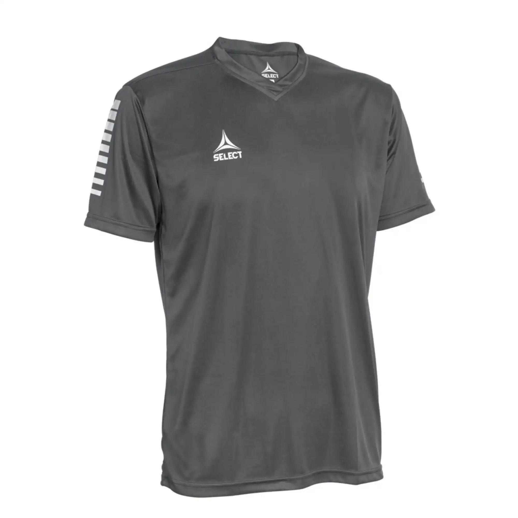 Camisola desportiva básica feita em 100% poliéster. Camisola respirável. Secagem rápida e absorção de humidade. Gola em V.